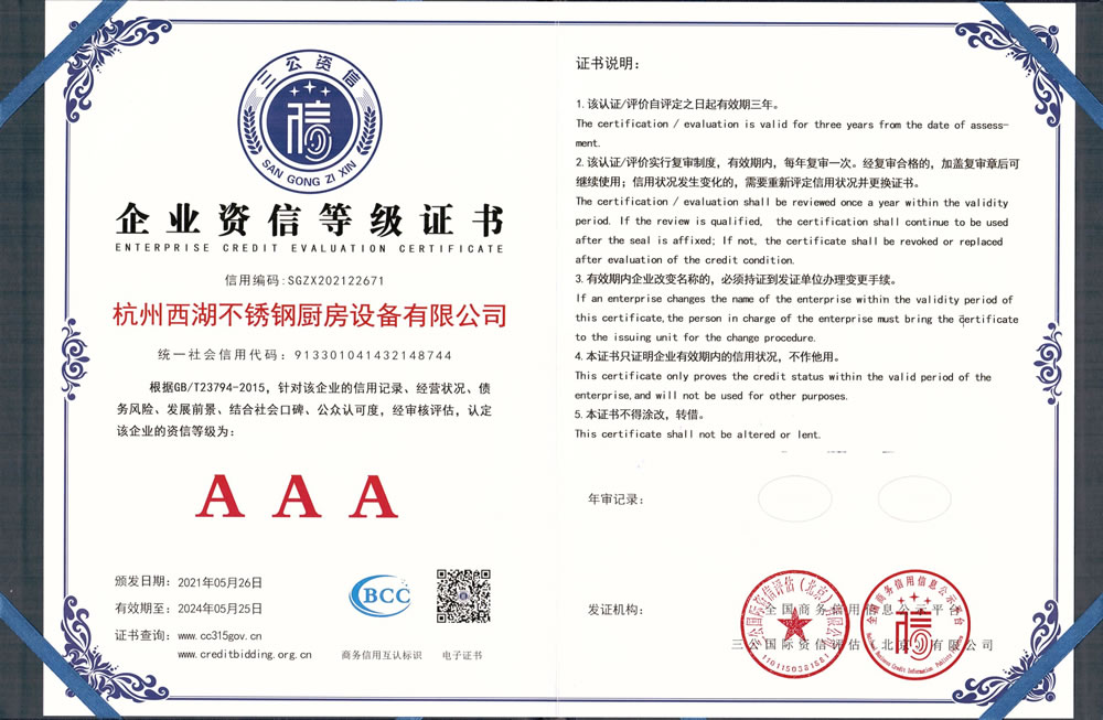 杭州西湖不銹鋼廚房設(shè)備有限公司成立20年以來(lái),通過(guò)一系列創(chuàng)造性的工作,凝聚企業(yè)力量,發(fā)揮自身優(yōu)勢(shì),助推企業(yè)發(fā)展和品牌建設(shè),取得了一些榮譽(yù),這是廣大西湖員工共同努力和各位新老客戶共同支持的結(jié)果,我們將再接再厲創(chuàng)造更多的輝煌!
